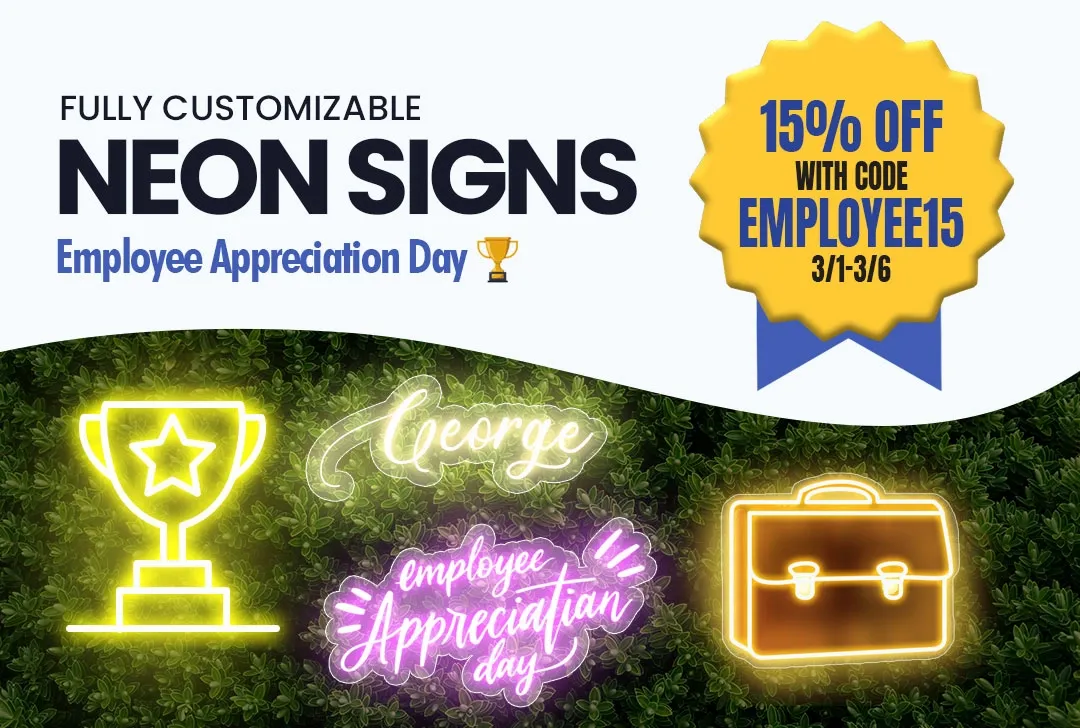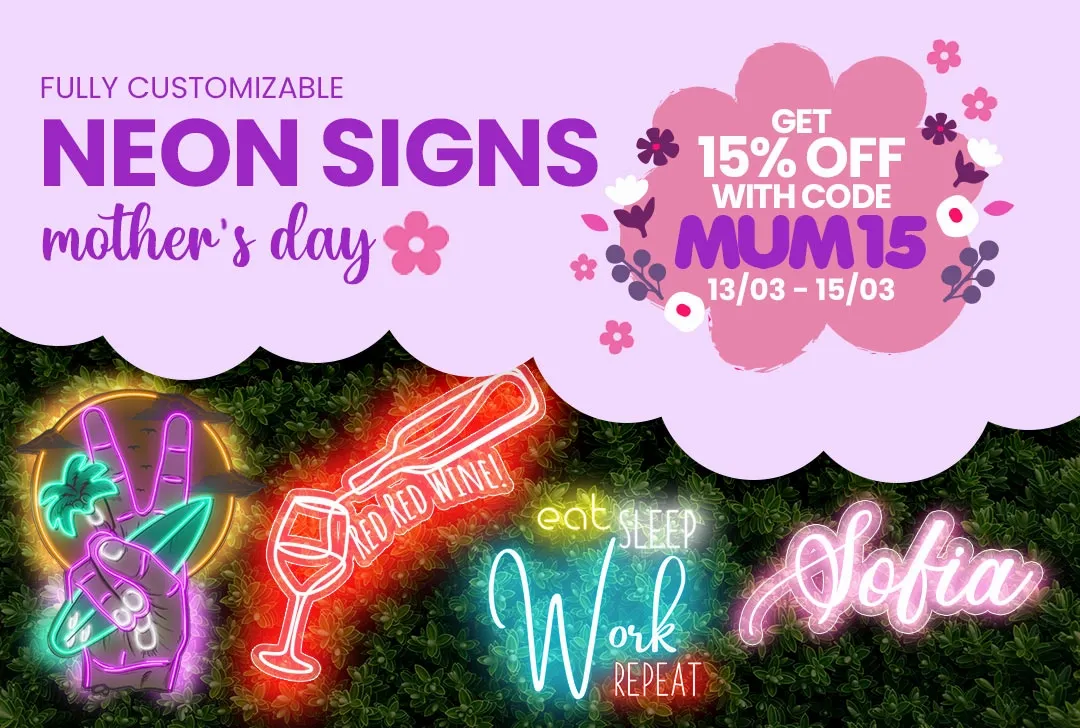 You can also place your sign on a stand or, if it’s a smaller custom neon sign, you could use 3M double-sided adhesive to stick it to a wall.